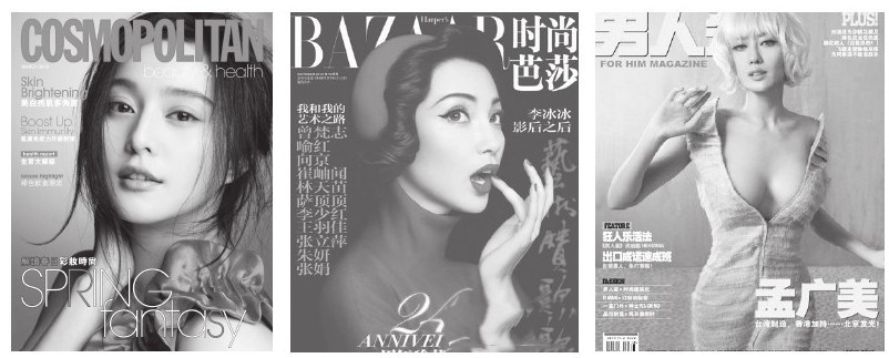 时尚杂志封面上的范冰冰、李冰冰、孟广美
