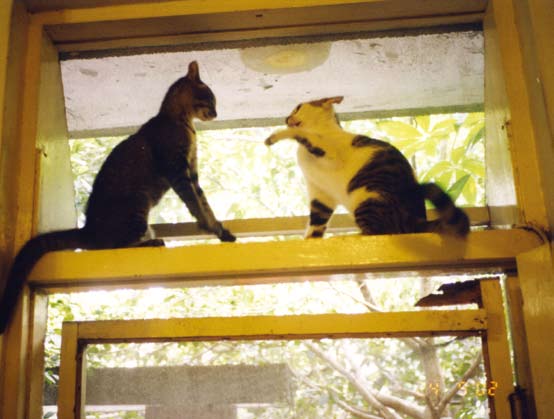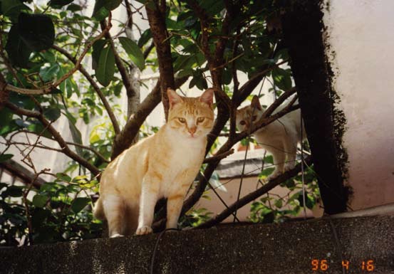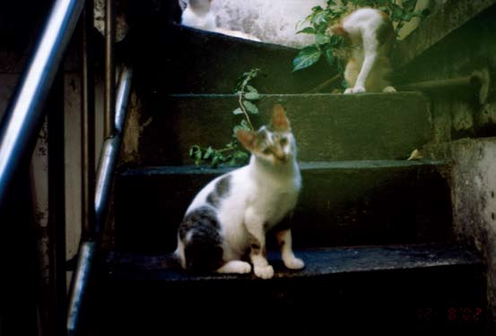 我常常在通往三楼的阶梯上沿阶遇到以Toro 为首的飞女党们,她们高高低低盘踞着,我讨好有礼(因要借路过)地一一打招呼:“ㄊㄡ—ㄊㄡ—ㄌㄡ—、萨斯斯……”