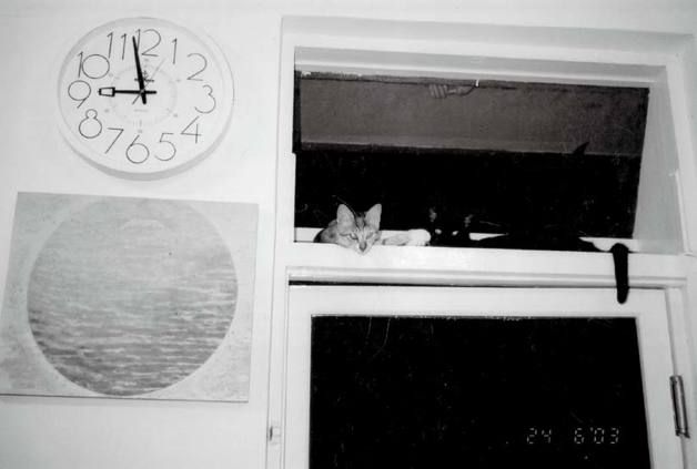 光米后来得了细菌性腹膜炎,经历半年的频频进出医院、手术、化疗,其间的照护、随病情好坏的心情起伏,折磨煞人,天文觉得甚且要比父亲生病的三个月要耗人心神得多。那是我第一次看到天文无法支撑,借她编剧的电影《千禧曼波》参奖戛纳之际同往,自己一人又在沿岸小镇一个个游荡大半个月,她不敢打电话回家,我们也不敢打去,于是大舅舅我天天学天文把光米抱进抱出,逐阳光而居,并不时催眠疗法夸赞光米:“光米你太厉害了,真是一只九命怪猫哇。”