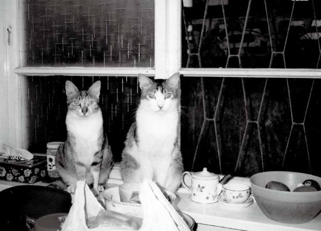 旱旱长得真丑,头脸毛短髭髭的像刚入伍遭剃了平头的男生,智力立时减半,常让人忘了她是一名女生,她的白底灰花散布得毫无章法,盟盟形容旱旱仿佛是蹲在一旁看人画画儿,被洗笔水一甩,甩成这模样的。我们想起来便喊她一声:“朱旱停,大丑女。”旱旱次次都爽快回应,语言复杂极了,不只我们人族这么觉得,猫族也一样,公推她做通译,因为往往负责喂食的婆婆在二楼翻译日文稿子过头又错过他们用餐时间,他们便会敦请朱旱停上楼到婆婆房门口请愿催促,没有一次不顺利达成任务。