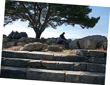 我的声音在烈日中飘忽不定,听上去远远比不上在柏林博物馆的台阶上,艺术课老师的声音那样自信与雄辩。但荷马的这些句子曾在这里上演,却是无可争辩的史实。我的声音经过剧场里那些残破但仍旧结实并洁白的石椅子,反弹回来,仍旧柔和清 晰。